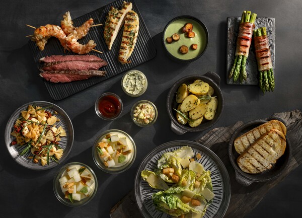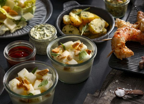 Tauchen Sie ein in die Welt des exquisiten Grillgenusses mit unserer BBQ Box Gourmet. Erleben Sie erstklassiges Grillgut wie Maishähnchenbrust in einer Orangen-Estragon-Marinade, köstliche Black Tiger Garnelenspieße mit einer Ingwer-Zitronengras-Marinade und saftiges Flanksteak in einer Sojasoße-Sesamöl-Marinade. Genießen Sie eine Vielfalt an Salaten und Vorspeisen, darunter eine erfrischende Gurken-Avocado-Kaltschale mit Brezencroutons, einen mediterranen Nudelsalat mit Pinienkernen und getrockneten Tomaten sowie einen klassischen Caesar Salat mit Parmesan und Croutons. Als Beilagen erwarten Sie ein Ciabatta-Brot und grüner Spargel mit Südtiroler Speck. Verfeinern Sie Ihre Gerichte mit unserer Trüffel-Kräuter-Butter, einer cremigen Guacamole und unserer hausgemachten BBQ Soße. Und zum krönenden Abschluss erwartet Sie eine verführerisch-leichtes Buttermilch Mousse mit Zuckermelonensalat und weißem Schoko Crunch. Bestellen Sie jetzt die BBQ Box Gourmet und lassen Sie sich von diesen exquisiten Aromen begeistern!